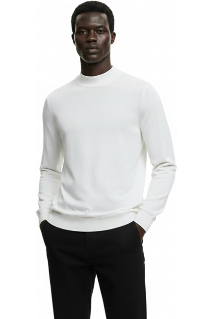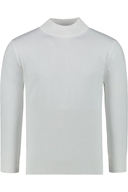 Hochwertiger Herren-Strickpullover mit halbem Rollkragen, Modell Gregorio – Weiß