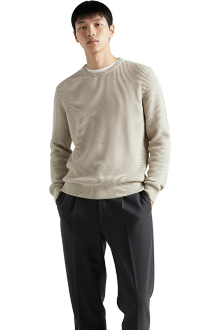 Hochwertiger Baumwoll-Rippstrickpullover von Giordani – Beige