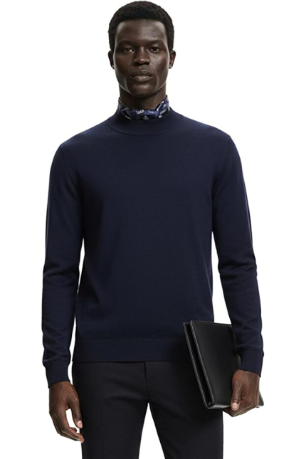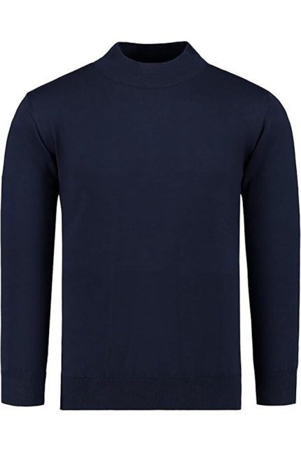 Hochwertiger Herren-Strickpullover mit halbem Rollkragen, Modell Gregorio – Marineblau