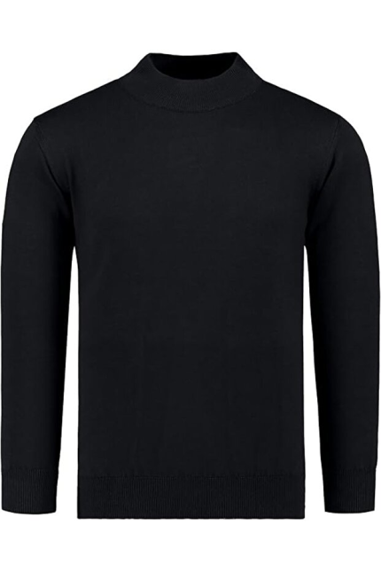 Hochwertiger Herren-Strickpullover mit halbem Rollkragen, Modell Gregorio – Schwarz