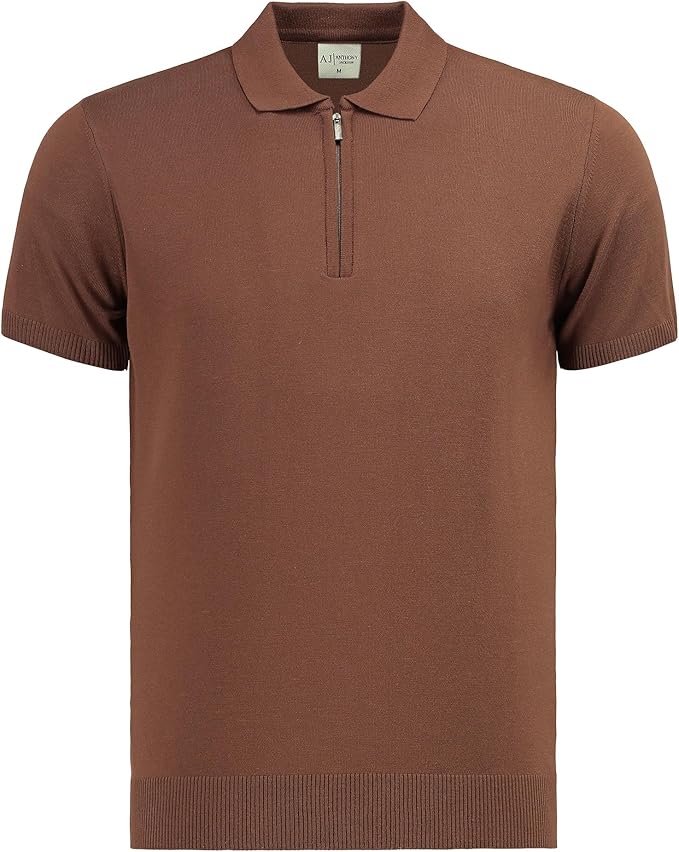Herren-Poloshirt mit Reißverschluss, tailliert, Strick, Stefano – AJ-601 – Braun