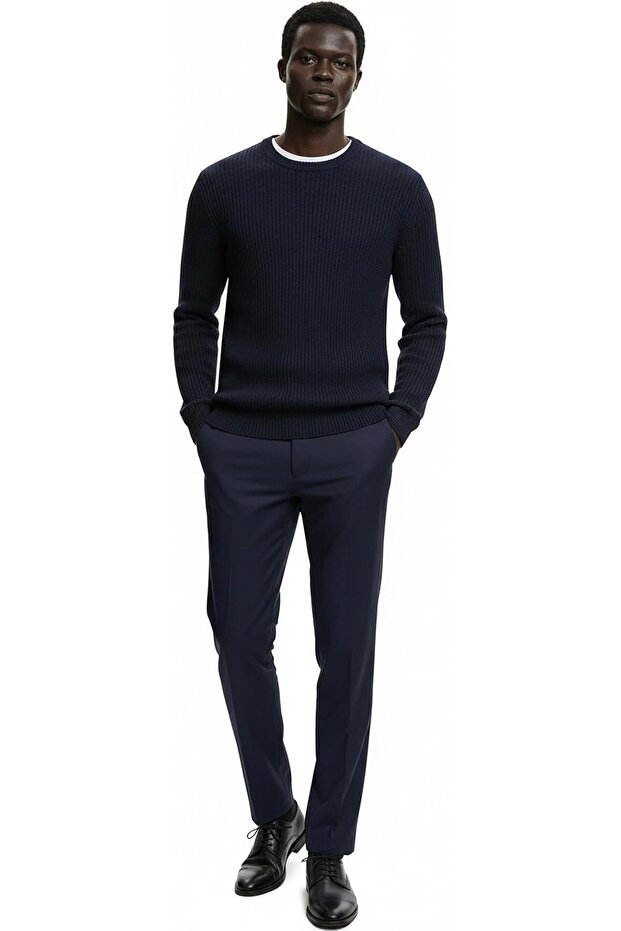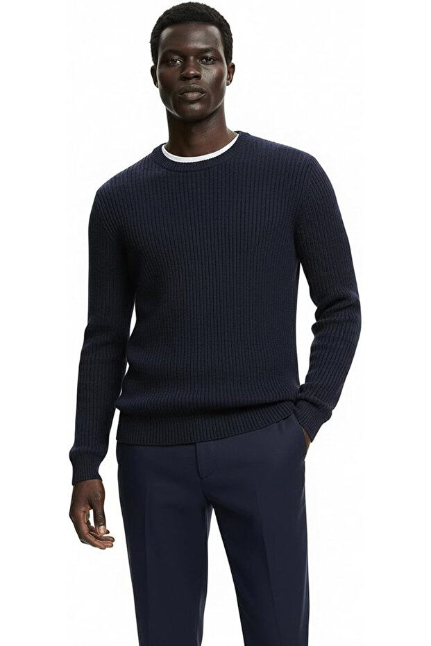 Hochwertiger Baumwoll-Rippstrickpullover von Giordani – Marineblau