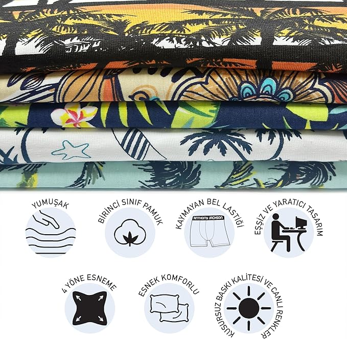 Lycra 5-3er-Pack Boxmuster Premium Herren Boxer Palm Horizon- AJ-349 A (5er-Pack)