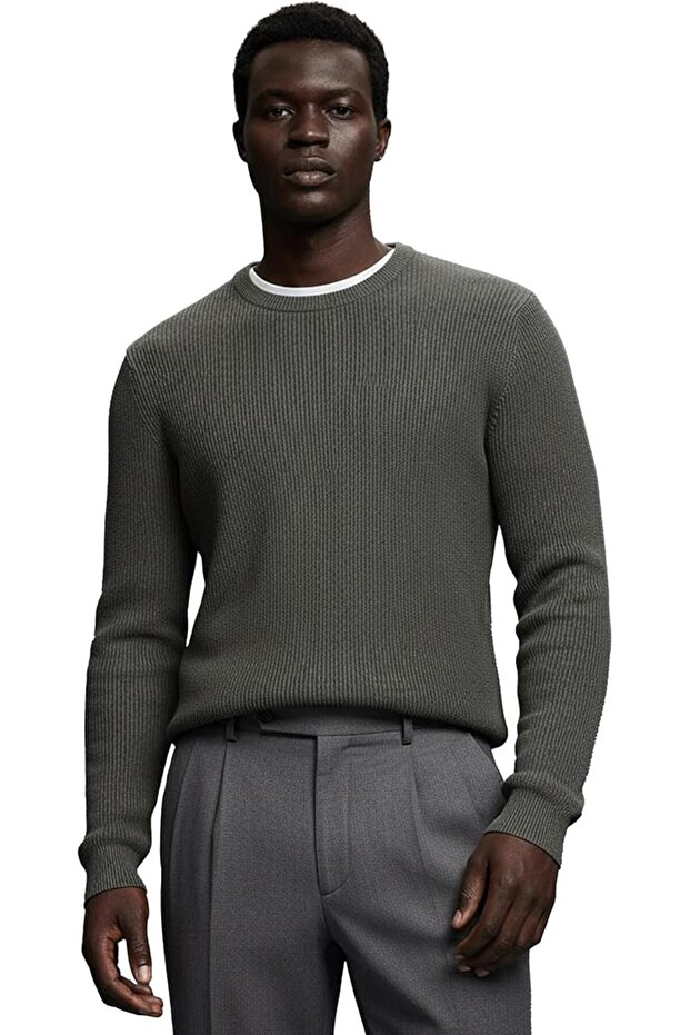 Premium-Baumwoll-Rippstrickpullover von Giordani – Khaki