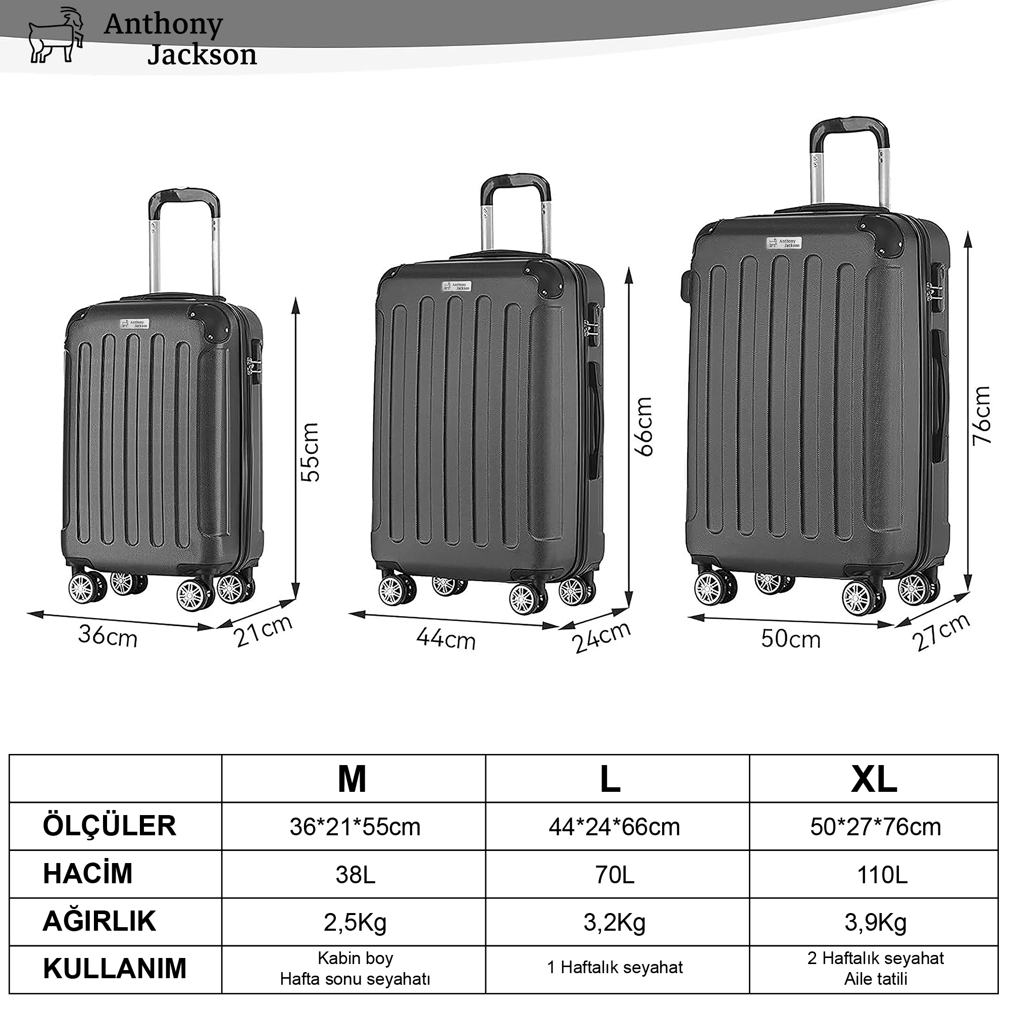 Büyük Boy ,Orta Boy ,Küçük Boy (Kabin Boy) ,3'lü Set |